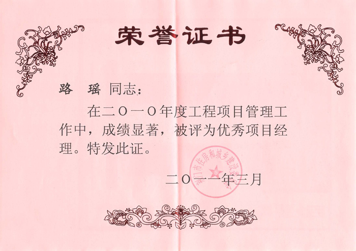 2011你那3月路瑤同志被評(píng)為優(yōu)秀項(xiàng)目經(jīng)理