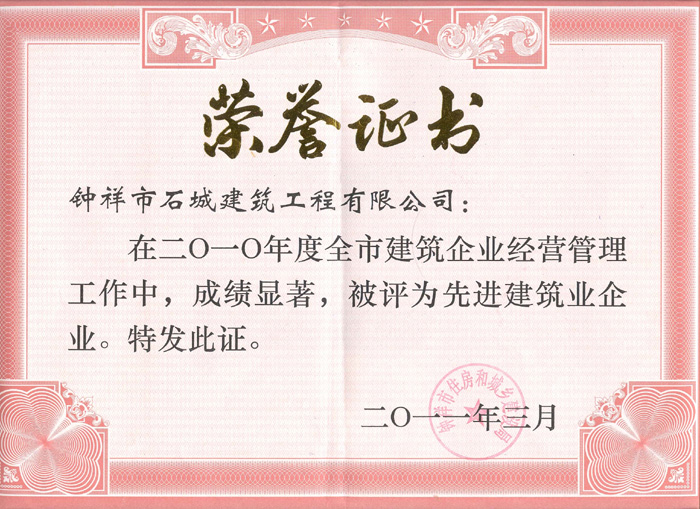 2011年3月被評(píng)為先進(jìn)建筑業(yè)企業(yè)