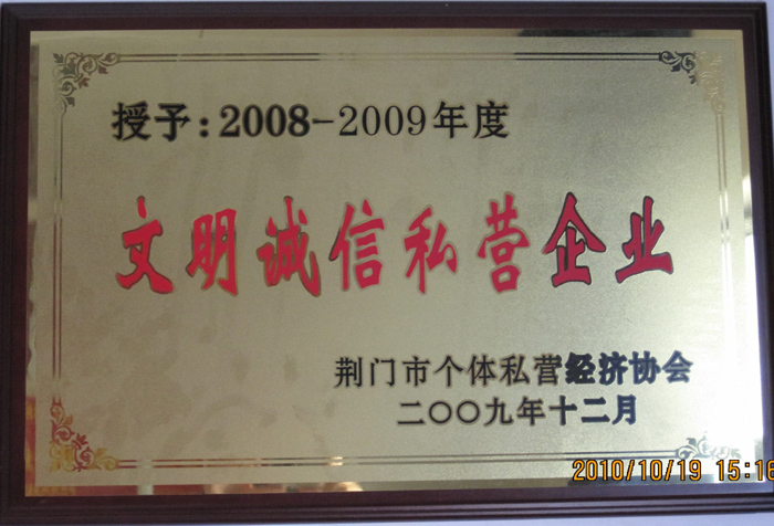 2009年12月被授予2008-2009年度文明誠信私營企業(yè)