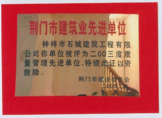 2003年荊門市規(guī)劃建設(shè)局荊門市建筑工程安全生產(chǎn)“先進(jìn)單位”