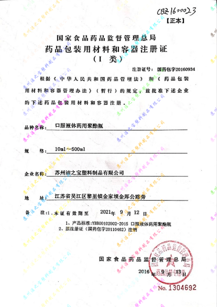 藥包材注冊證-PET瓶